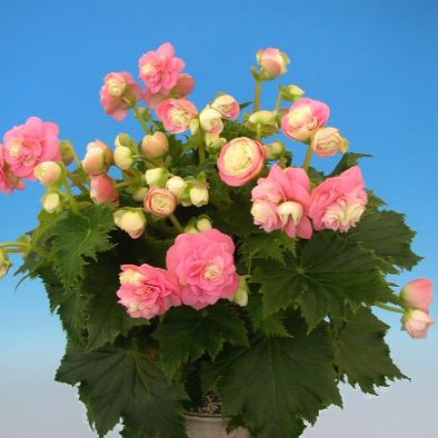 Clara クララ 半八重咲き、多花 性。白に淡いピンクの 縁どりが入る。株のま とまり良く優良種。